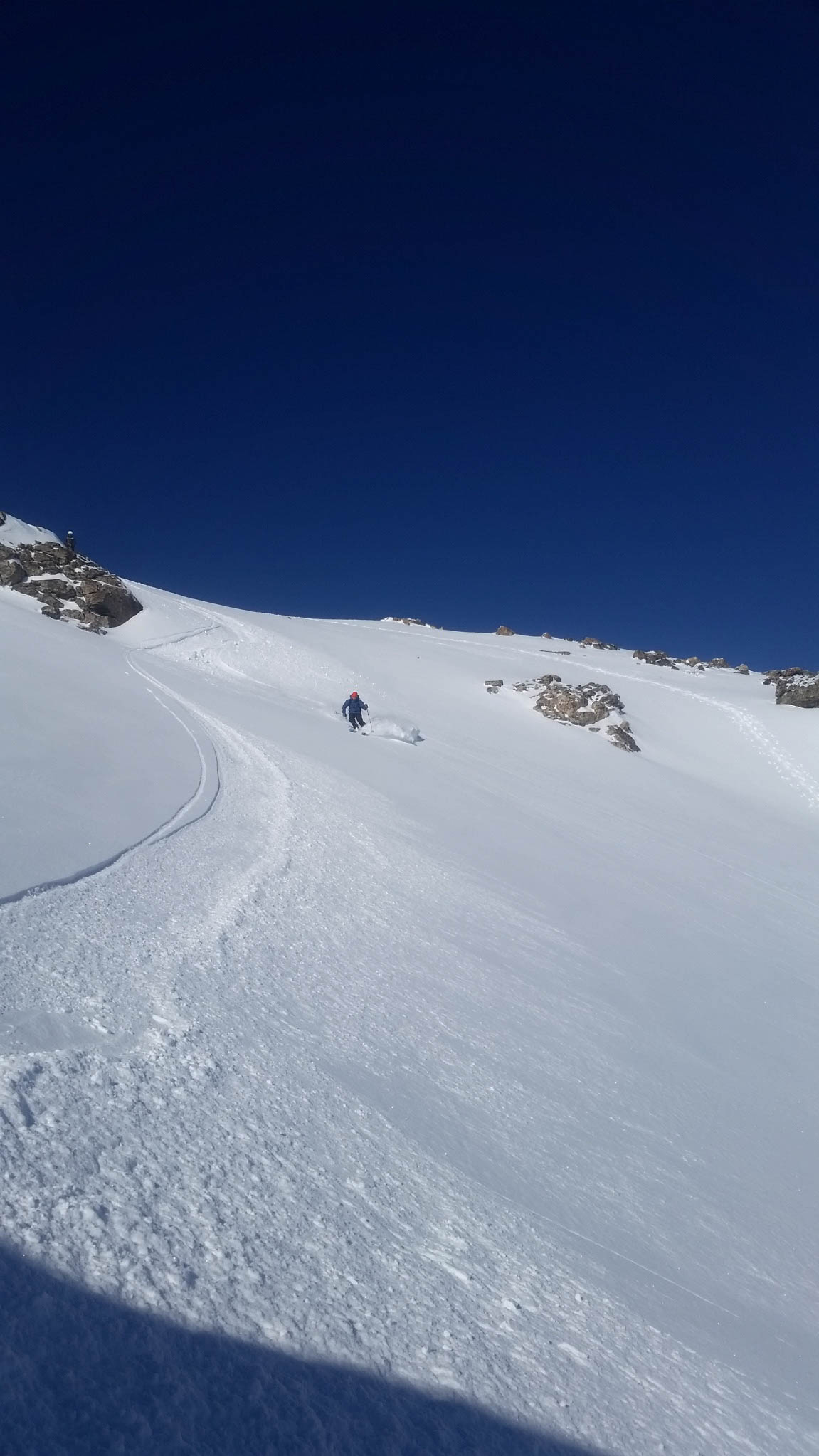 Despite that minor setback, we made it to what we thought was the base of the couloir in just over 2hrs. Here we stopped for a few minutes to eat and decided how to tackle the initial steep face.
