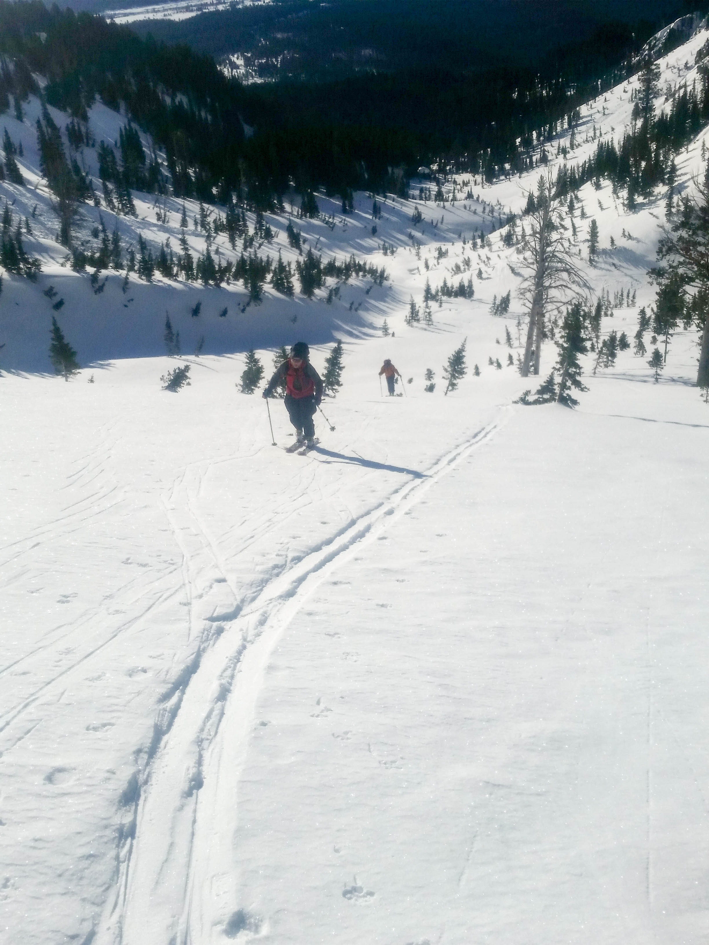 We took some time to look around and enjoy the scenery, snapping a few reconnaissance photos of lines in Death Canyon, then geared up for the skiing.